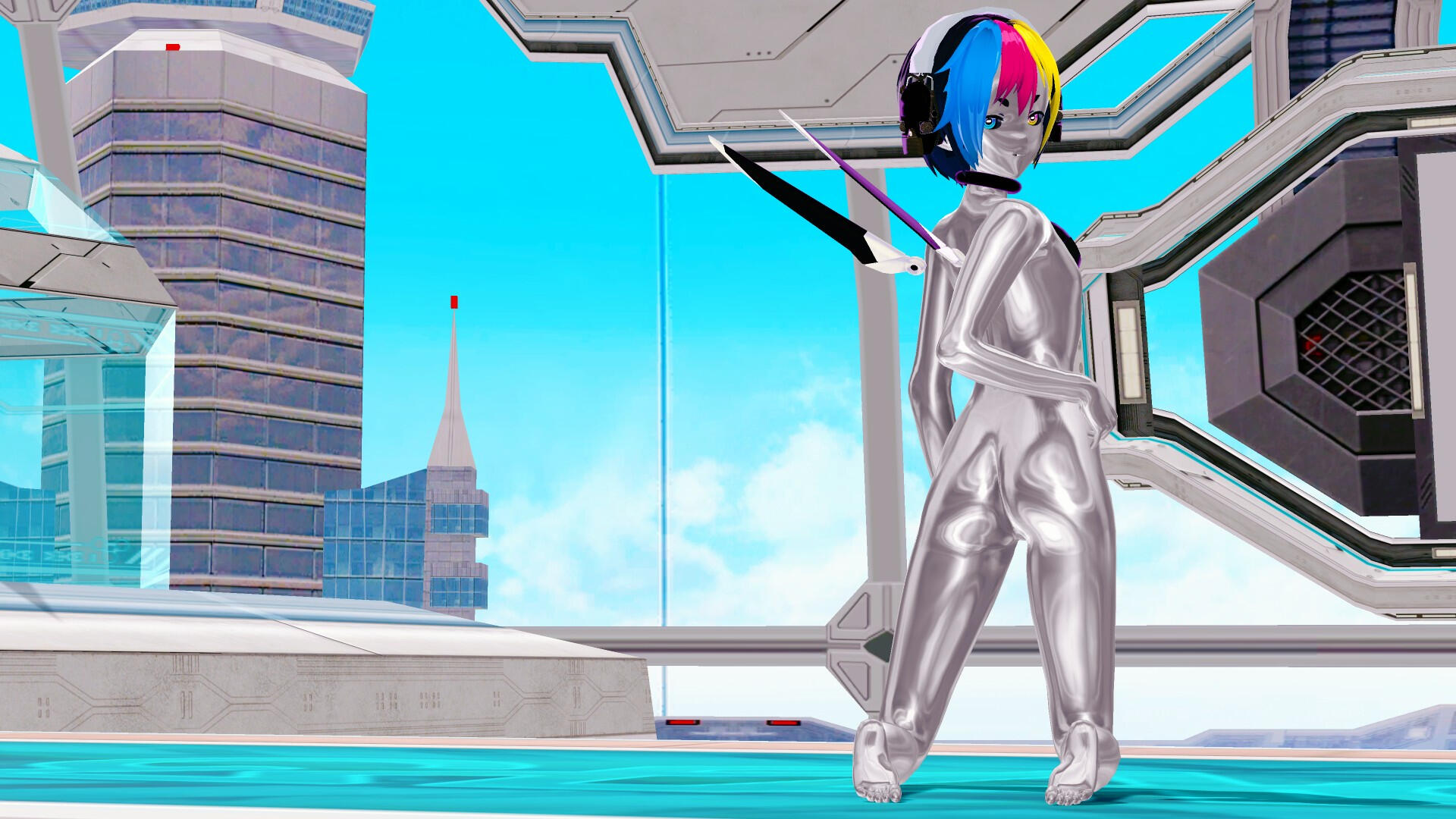 Kei-chan’s skin is made of a smooth, flexible, seamless, and glossy material called Neo-Argentium, making its face and midriff shiny and metallic without sacrificing mobility.Some parts are equipped with micro-pores that diffuse a pleasant fragrance.